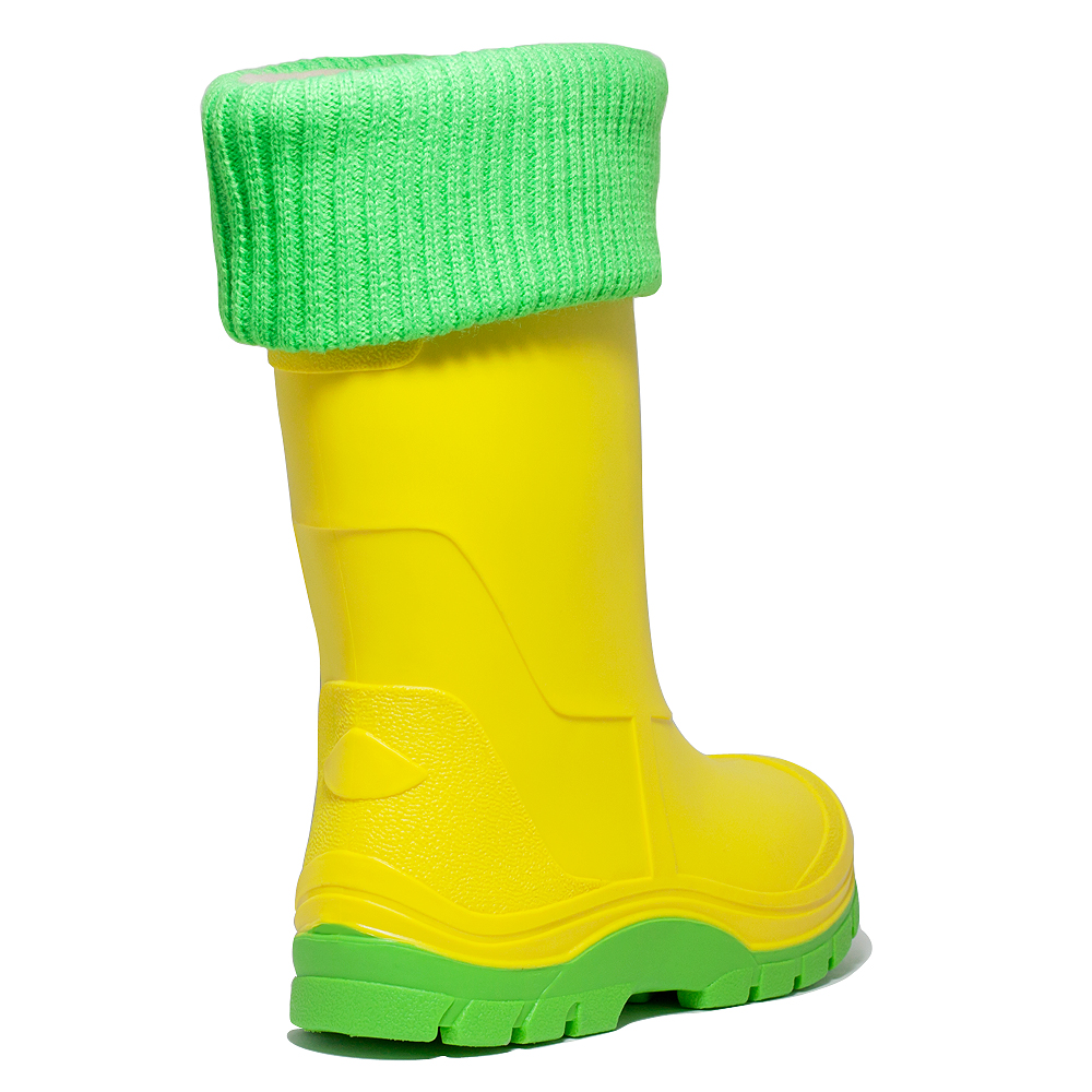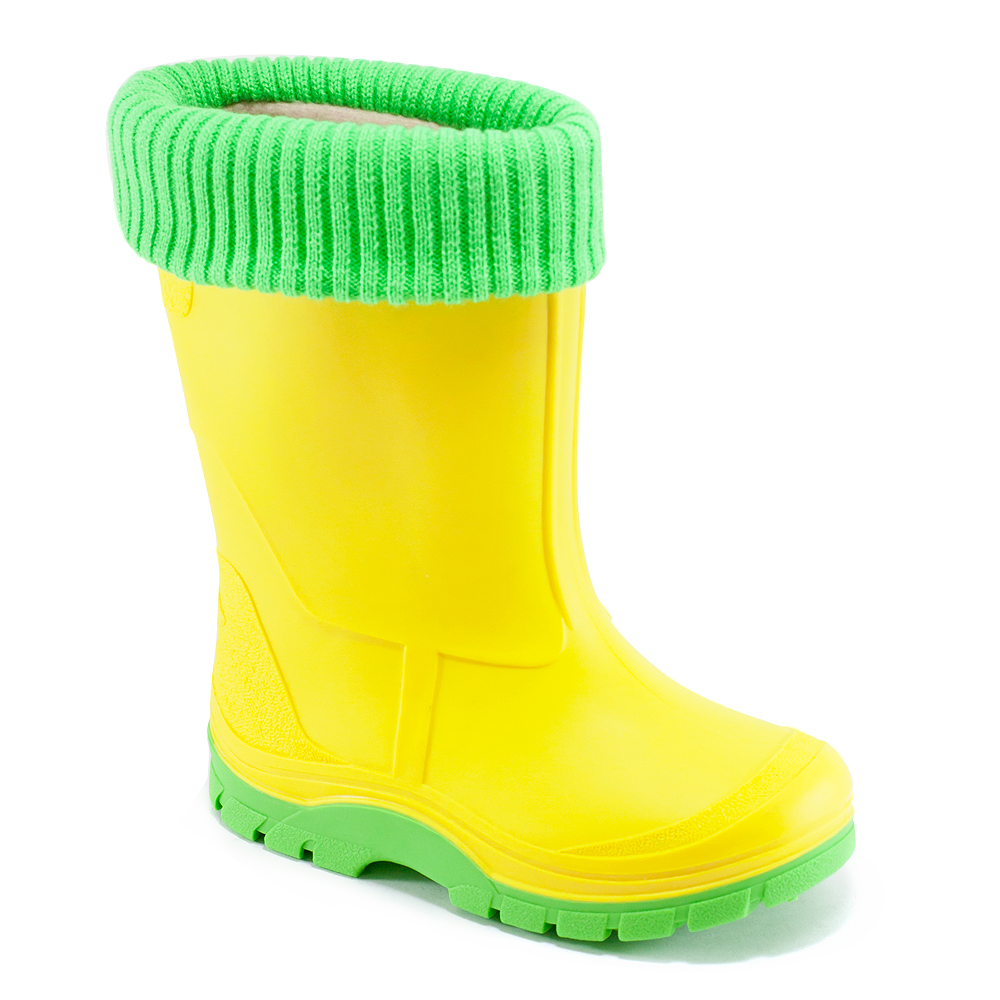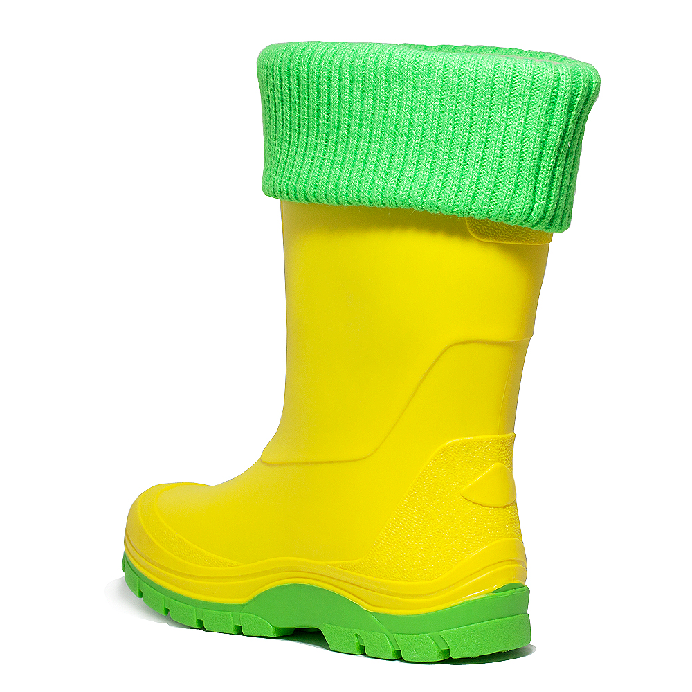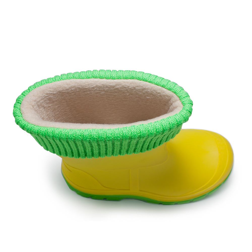 чоботи виготовлені з полімерного композиційного матеріалу-ПВХ. Комплектація знімною вставкою з флісу з відворотом з довяза в колір підошви.
