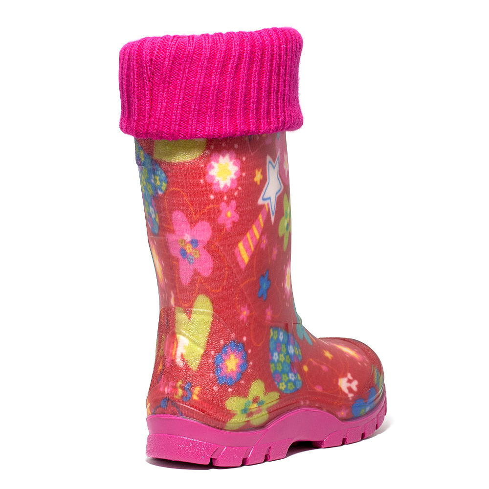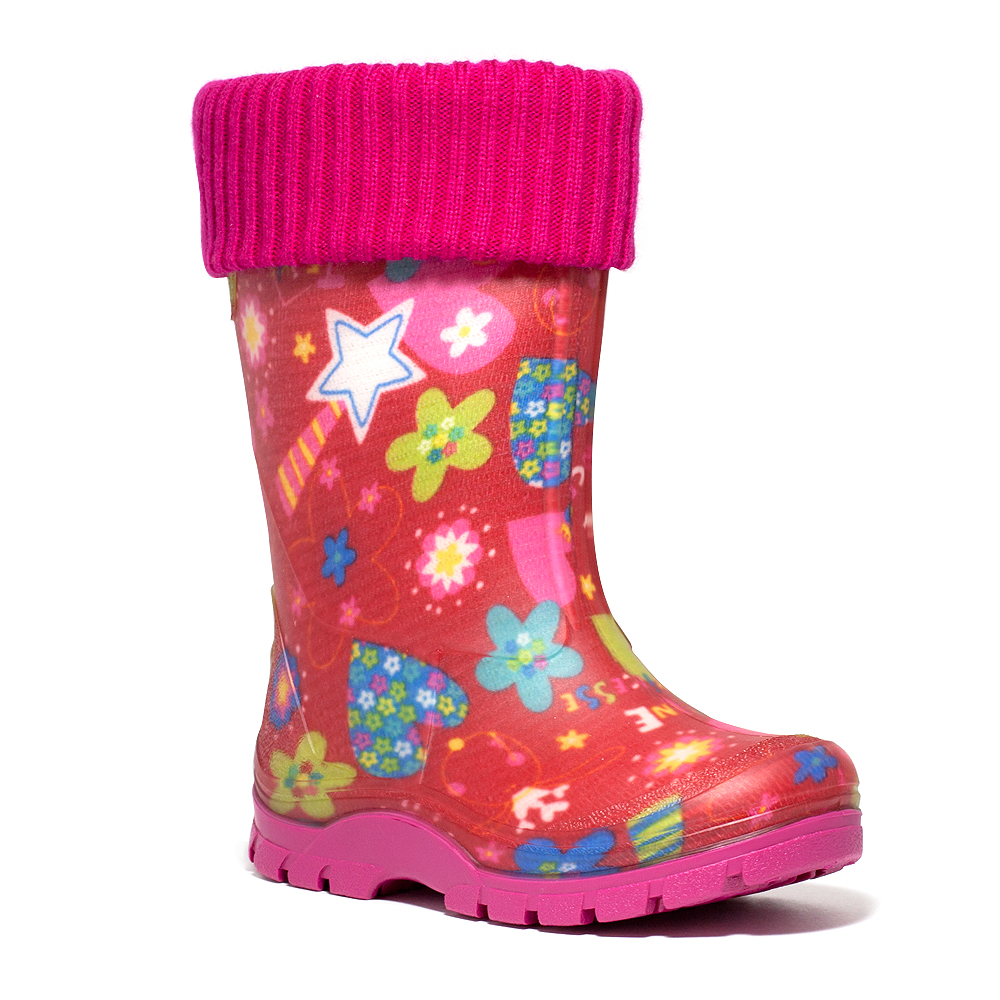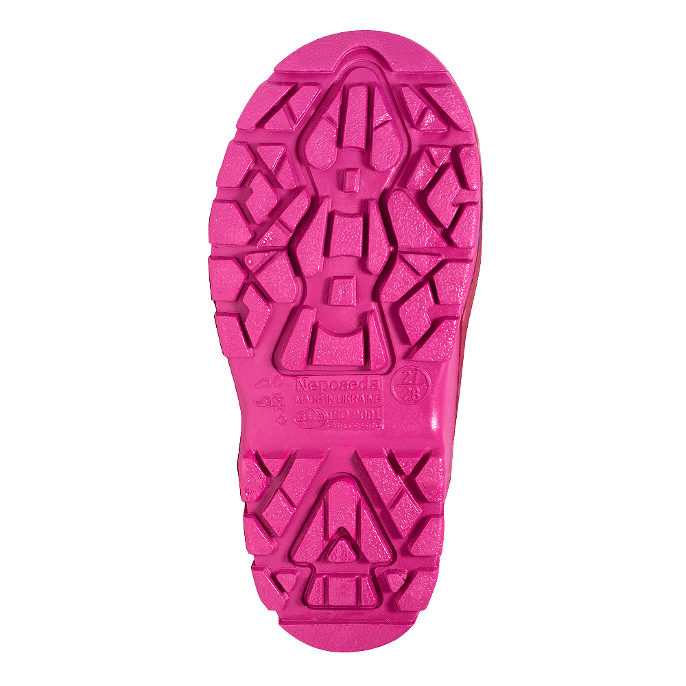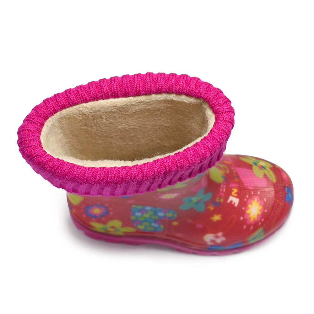 чоботи виготовлені з полімерного композиційного матеріалу-ПВХ. Комплектація знімною вставкою з флісу з відворотом з довяза в колір підошви.